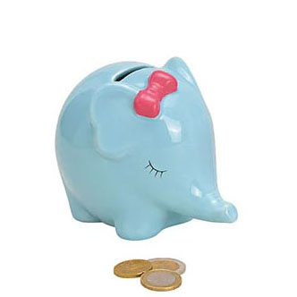 - Keramička kasica u obliku slončeta sa mašnicom. Boja : plava. Dimenzije : 12 x 9 x 8cm