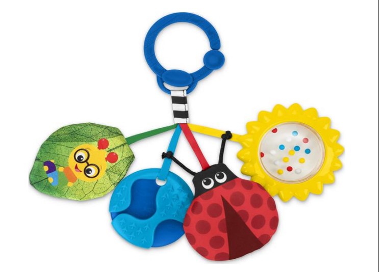 - 4 igračke: Bubamara, sunce sa zvečkama, mlevena igračka od strukturiranog silikona i pucketavi list sa gusenicom Cal.