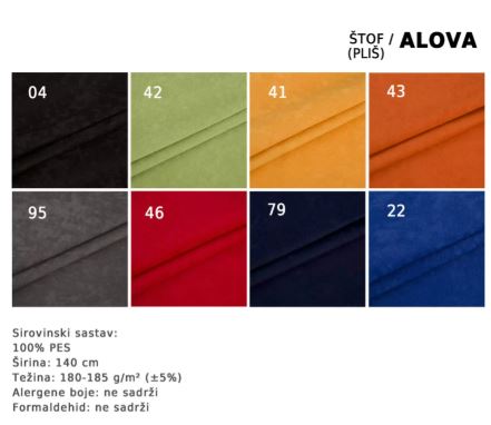 - Materijal za tapaciranje ALOVA – 1.000 din. + PDV.
