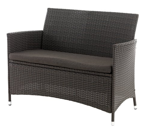 Udobna, luksuzna klupa sa 2 mesta za sedenje, od čelika i ručno pletenog petana otpornog na vremenske uslove. Sa jastukom.