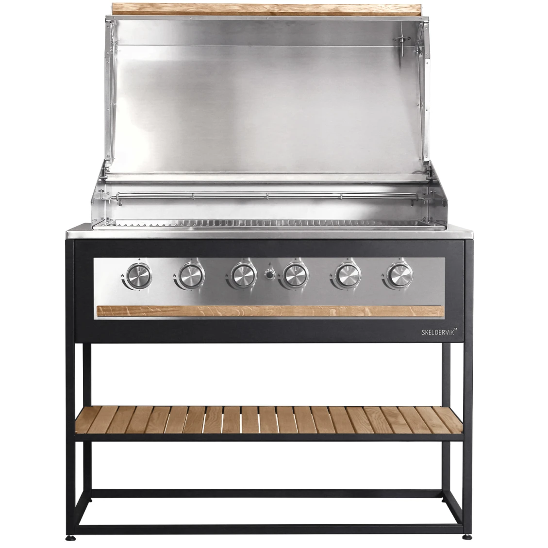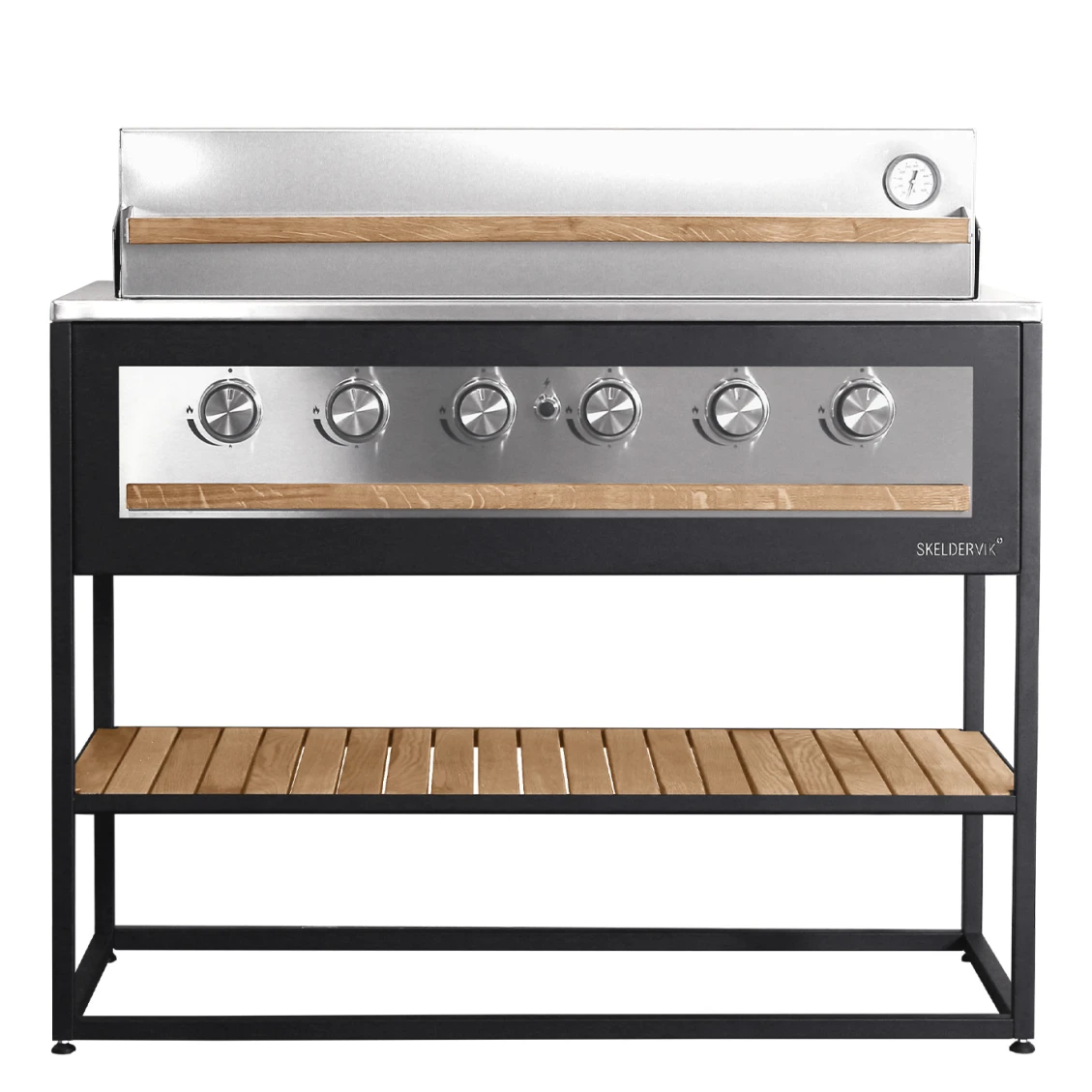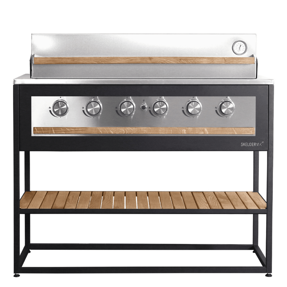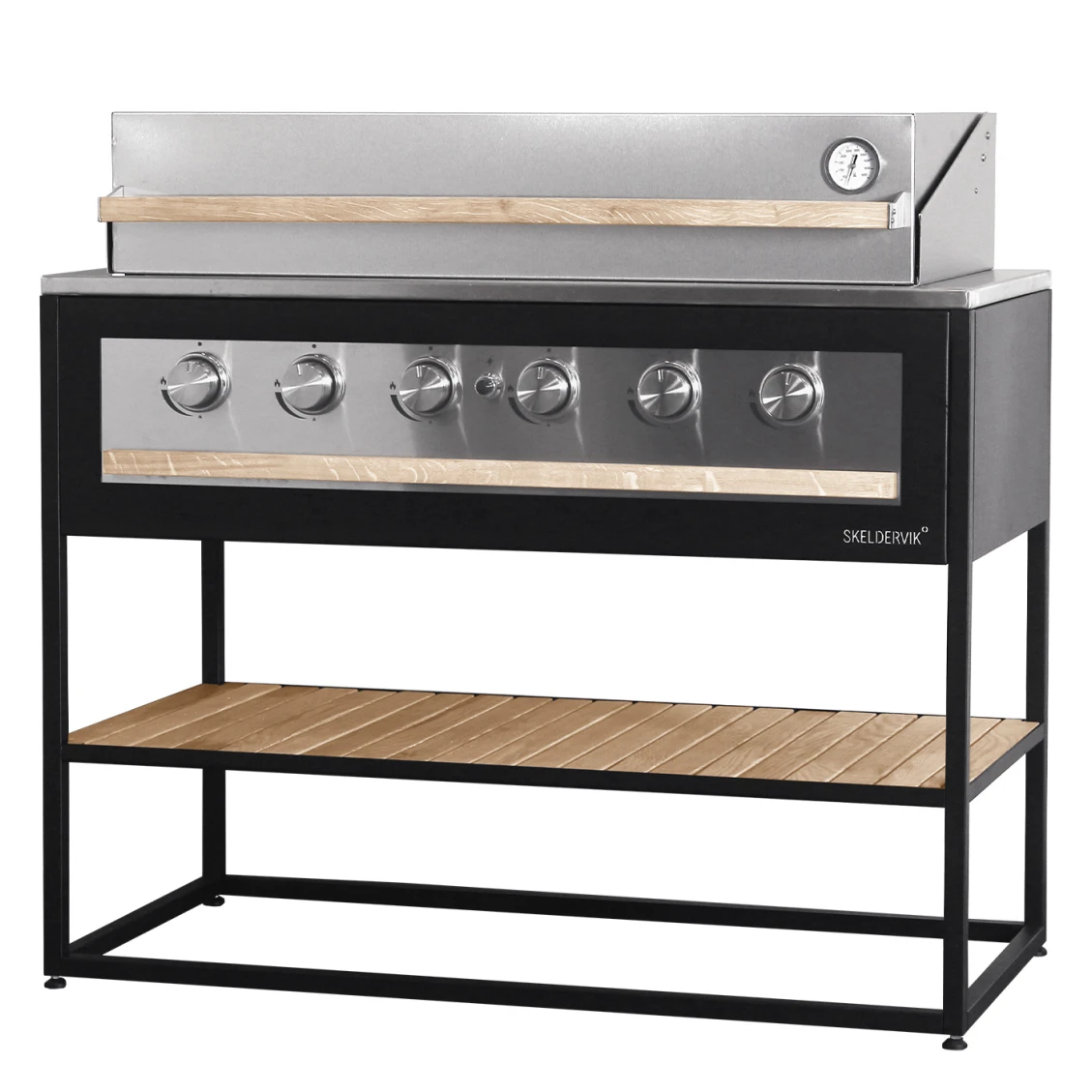 Kolekcija Skeldervik samostojeći plinski roštilj je pravo švedsko umijeće! Stvoren sa najvećom pažnjom . Samostojeći plinski roštilj je prekrasno definisan sa čistim skandinavskim linijama i izvanrednim kvalitetom. Sve spoljne kuhinje Skeldervik imaju radnu ploču izrađenu od izdržljivog i otpornog nerđajućeg čelika i okvire u elegantnoj mat crnoj boji , sa svim delovima sastavljenim ručno. Raspon uključuje roštilj na ugalj, plinski roštilj, sudoperu, modul za skladištenje i ugaoni modul kao i ekskluzivne spoljne kuhinjske dodatke. Osim što će biti pravi eksponat u vašem spoljnom prostoru, spoljna kuhinja Skeldervik sa svojim čvrstim, bezvremenskim dizajnom i elegantnim detaljima od drvene hrastovine takođe će vam godinama donositi uživanje tijekom cijele godine.Samostojeći plinski roštilj skandinavskog dizajna