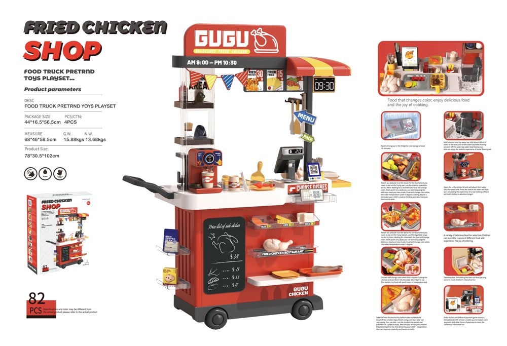 - sadrži hranu koja menja boju tokom,,prženja,, , sudoperu na vodu, kafe mašinu i svu potrebnu opremu