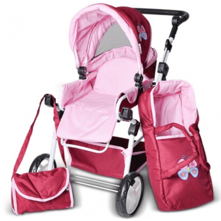 Kolica za lutke su metalna i imaju nosiljku za bebe