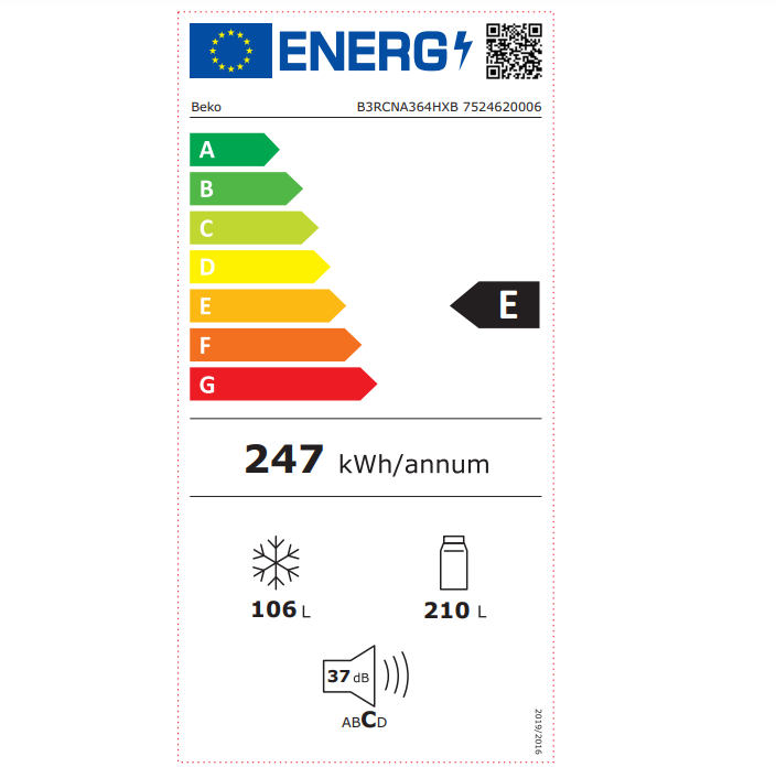 - Zapremina 316l (210l frižider, 106l zamrzivač)