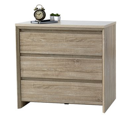 Komoda Oak izuzetnog kvaliteta sa 3 fioke. Komoda od ukrasnog furnira u boji brušenog hrasta, savršena za Vaš dom.