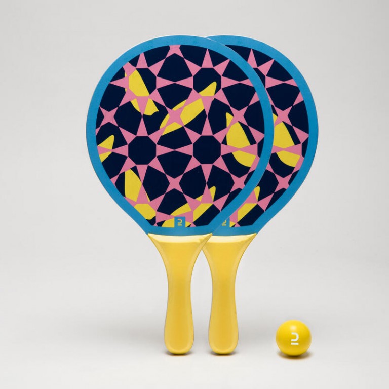 Komplet drvenih reketa za tenis na pesku plavo žuta