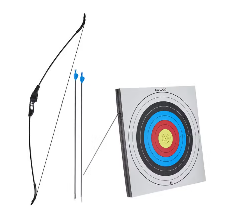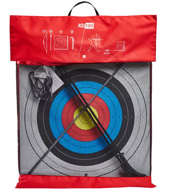 - Jednostavno postavljanje samostojeće mete + 1 dvoručni luk i 2 strele sa čeličnim vrhom.