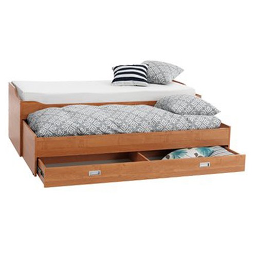 Praktičan krevet Meest od ukrasnog furnira u boji johe,sa dodatnim ležajem koji se lako izvlači pomoću točkića i tako stvara još jedno mesto za spavanje.. Za sve vrste dušeka. Sa podnicom, bez dušeka.