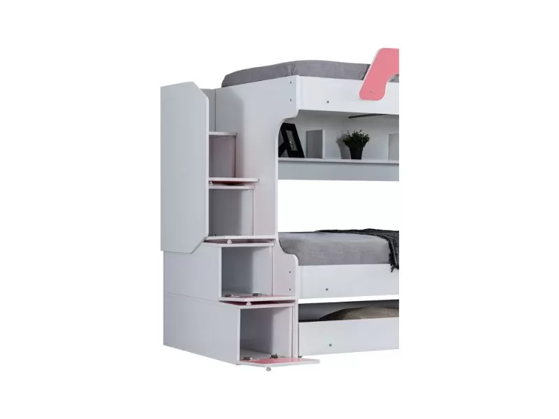 Krevet na sprat Hep 13 Krevet na sprat Hep 13 predstavlja idealno rešenje za maksimalno iskorišćenje prostora uz besprekornu sigurnost i udobnost. Sa glavnim materijalom od visokokvalitetne iverice 1. klase presvučene melaminom, ovaj krevet osigurava izuzetnu trajnost i dugotrajnu estetiku. Fleksibilan dizajn omogućava montažu merdevina kako na desnu, tako i na levu stranu, pružajući prilagodljivost prema rasporedu prostorije i vašim potrebama. S dimenzijama dušeka od 90*190*20 cm visine za sva tri kreveta, pruža prostran i udoban prostor za spavanje bez kompromisa. Ovaj krevet proizveden u skladu sa najvišim sigurnosnim standardima, ovaj krevet na sprat obezbeđuje maksimalnu nosivost od 100 kg, pružajući vam potpunu sigurnost i mir tokom noći. Bilo da je u pitanju dečija ili tinejdžerska soba, ovaj krevet na sprat predstavlja savršen spoj funkcionalnosti, sigurnosti i moderanog dizajna koji se lako prilagođava vašem prostoru i stilu. Uživajte u udobnosti i funkcionalnosti uz ovaj krevet na sprat. * Napomena: Dušek nije ukljucen u osnovnu cenu kreveta,a kompletnu ponudu mozete naci u kategoriji:Duseci Troškovi montaže i transporta nisu u ceni.