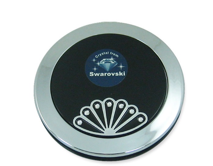 - Damsko ogledalce, precnika 7cm, sa cirkonima, boja crna. dva ogledala, jedno uvelicavajuce 3x. Upakovano u kutiju, sa plisanom vrecicom za drzanje