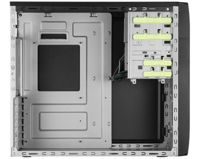 Osnovne karakteristike - Format kućišta: Mid Tower Podržani formati matičnih ploča: ATX,microATX,Mini-ITX Napajanje - Snaga napajanja: Bez napajanja Ležišta za spoljne uređaje - 5.25": 2 3.5": 1 Unutrašnja ležišta - Unutrašnja 3.5" ležišta: 2 Unutrašnja 2.5" ležišta: 1 Priključci napred - USB 3.0: 2 USB 2.0: 2 Audio: 2x 3.5mm (izlaz + ulaz) Ležišta za ventilatore - Prednja strana: 1x120mm ili 1x90mm ili 1x80mm Poleđina: 2x80mm Leva stranica: 2x120mm Kompatibilnost - Maksimalni broj slotova: 7 Maksimalna visina procesorskog hladnjaka: 140mm Maksimalna dužina grafičke karte: 380mm Fizičke karakteristike - Dimenzije: 484mm x 404mm x 180mm Materijal: Čelik (0.6mm) Masa: 4.05kg Boja: Crna Stanje: Nekorišćeno Pakovanje: Set šrafova Reklamacioni period - Reklamacioni period: 24 meseca