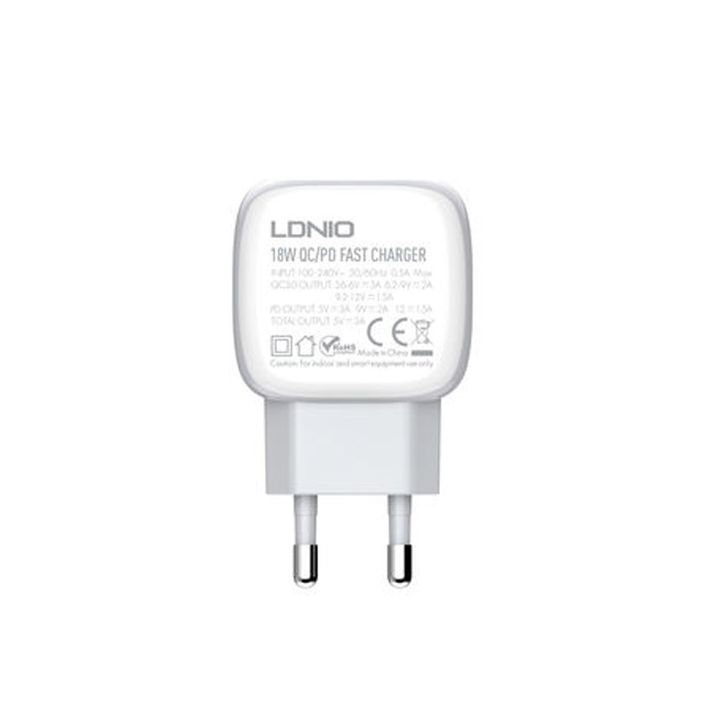 Kucni punjac LDNIO A2313C USB 3.0 FAST CHARGING 18W + Lightning kabel beli