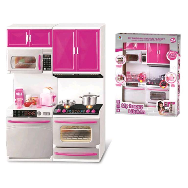 - Fantasticni, kuhinjski set je igracka koja se sastoji od dve vertikalne celine .Jedana vertikala celina ima masinu za paranje sudova ,mikrotalasnu, kao i ormaric za odlaganje kuhinjskih elemenata ,casa,soljica, toster .….Drugi deo sadrzi ormaric I sporet sa rernom i fiokom za odlaganje,serpicu,tiganj.Vrata na ormaricima se otvaraju-zatvaraju ,dok ringle na sporetu imaju vizualni I zvucni efekat .Set sadrzi u sebi baterije(3xL44/AG14).Uzrast : 3+ Dimenzije pakovanja:26x8x34,5cm