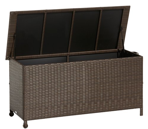 Luksuzan i čvrst baštenski sanduk na točkićima. Sanduk ima ručku i hidraulični poklopac.