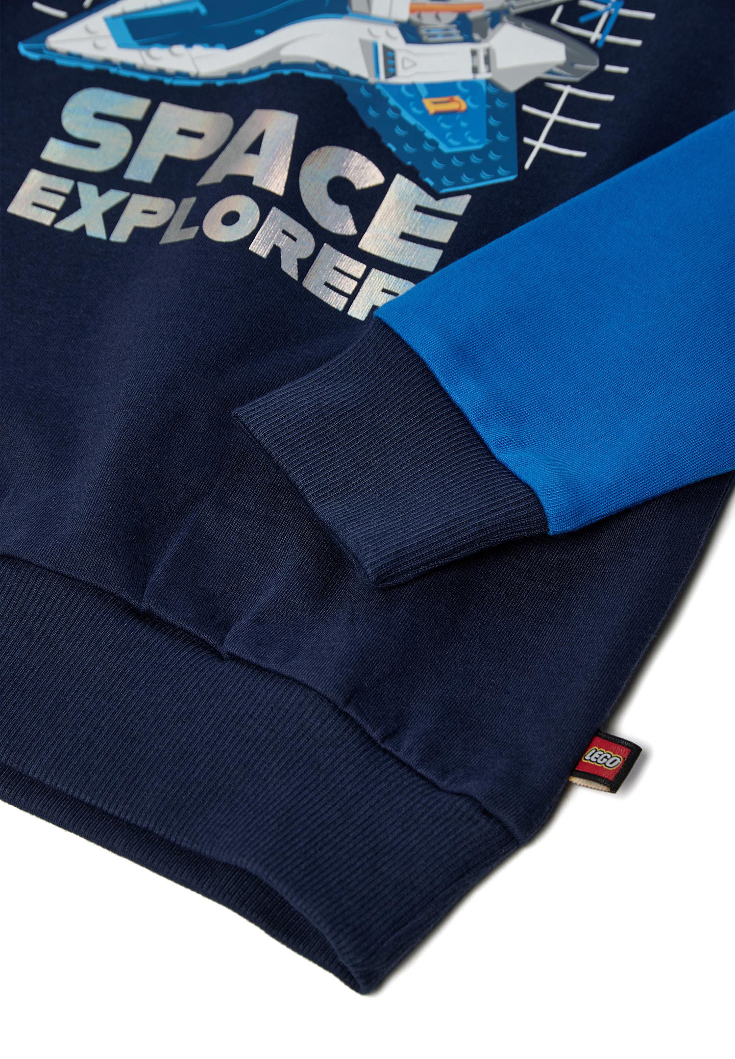 Tamnoplavi LEGO CITY duks od 100% pamuka sa printom svemirskog istraživača.