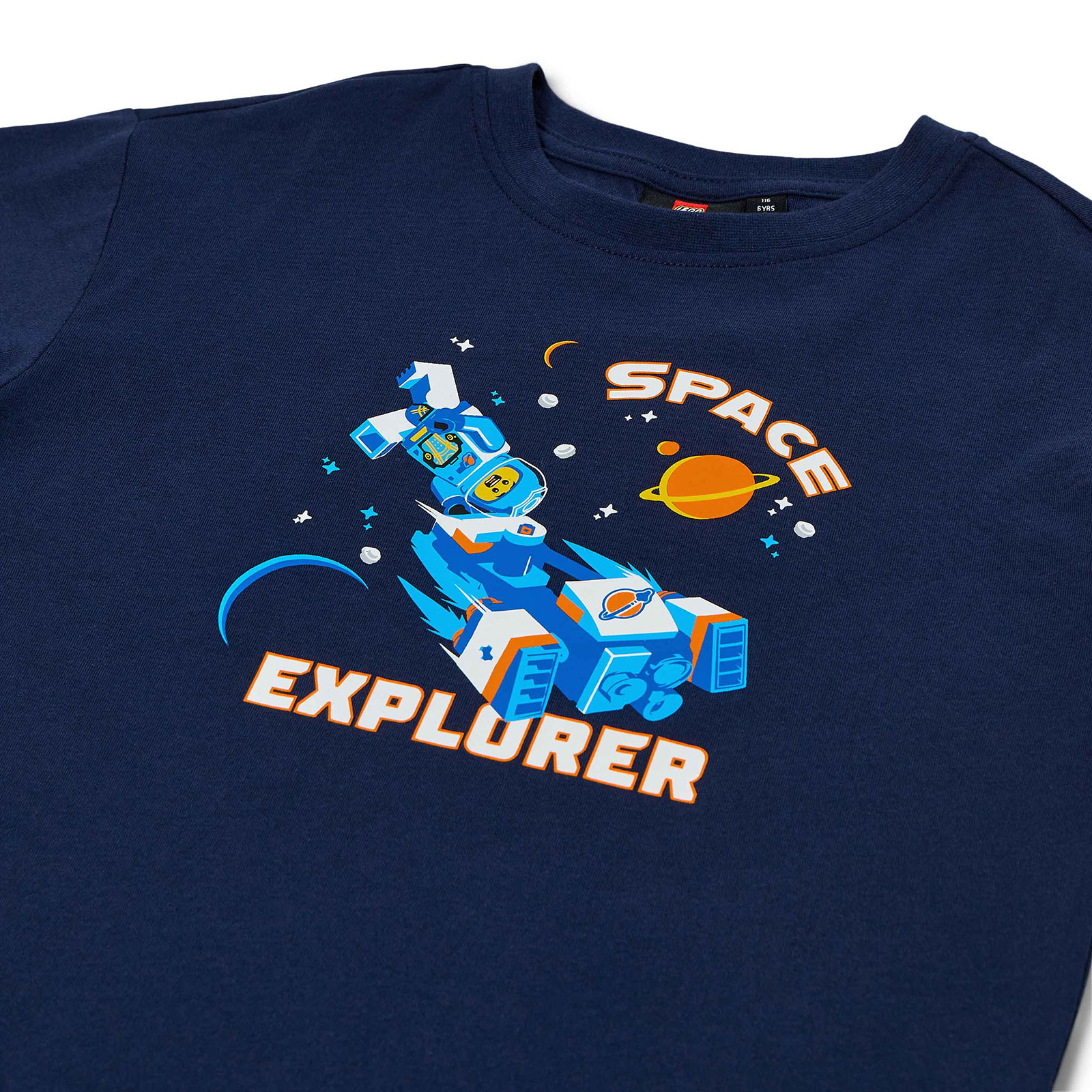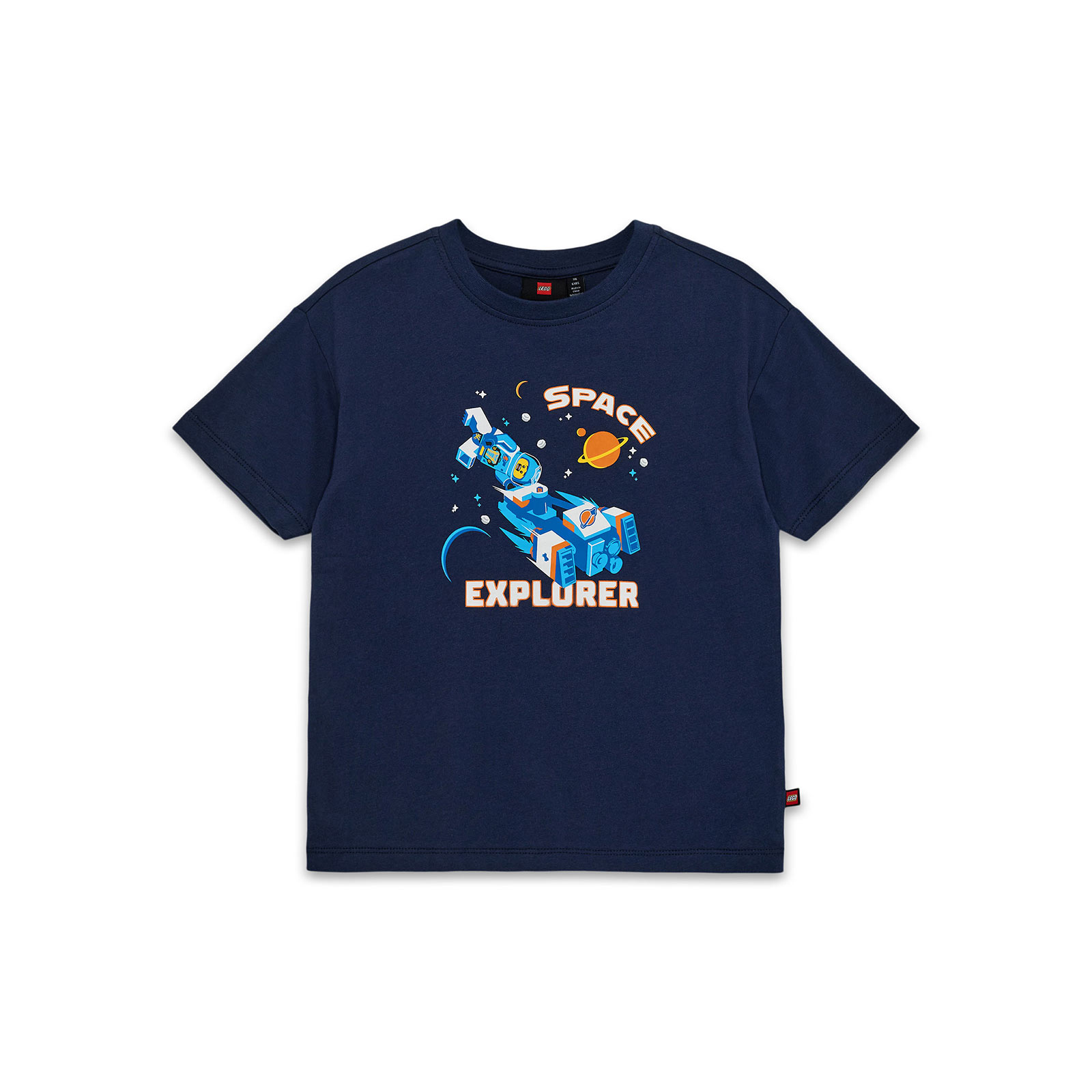 Lepa i maštovita LEGO majica sa svemirskom temom. Na prednjoj strani nalazi se živopisna štampa inspirisana LEGO City svemirskim setovima za gradnju. Na majici piše „SPACE EXPLORER” belim slovima, a prikazani su astronaut i svemirska letelica. Majica za dečake i devojčice ima rebrasti rub na otvoru za vrat i izrađena je od mekog pamuka.
