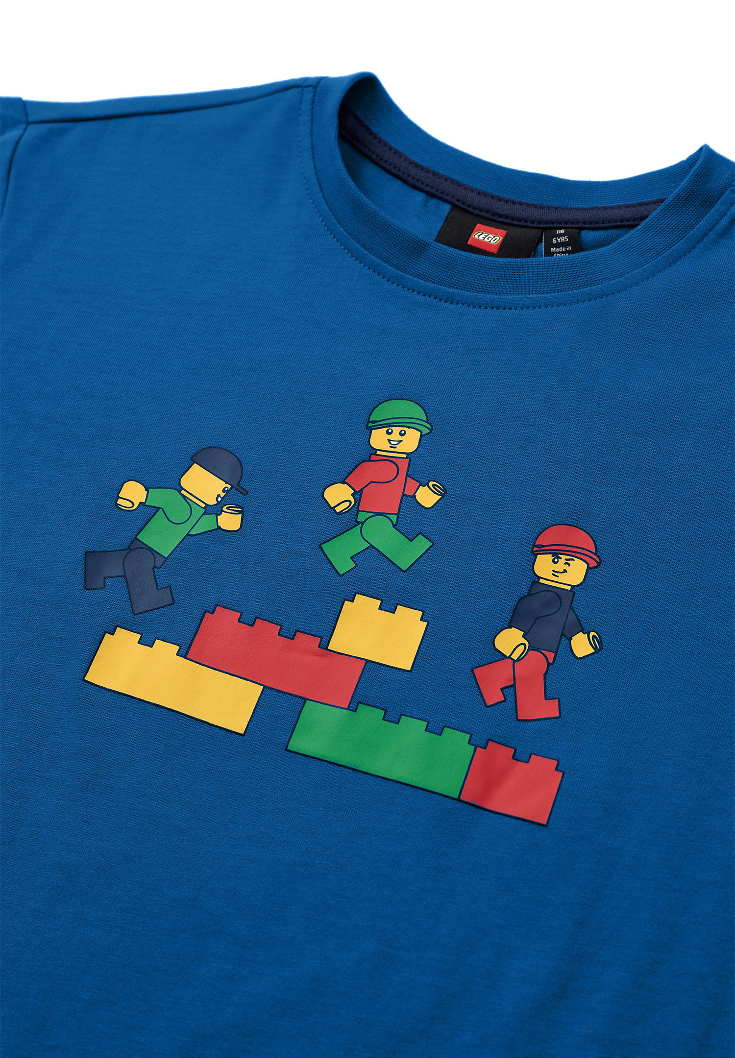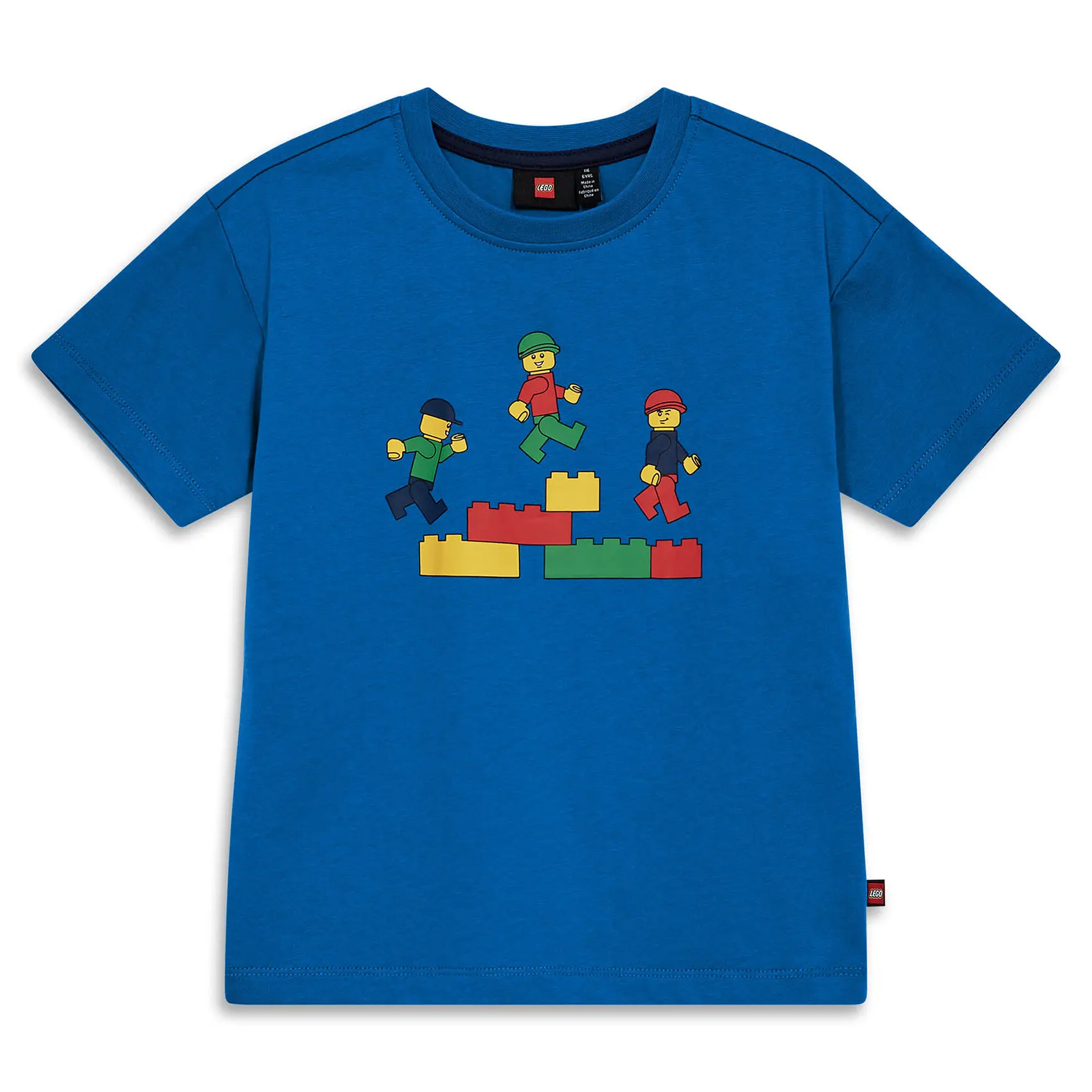 Plava LEGO majica kratkih rukava od 100% pamuka sa printom LEGO figurica i kockica.