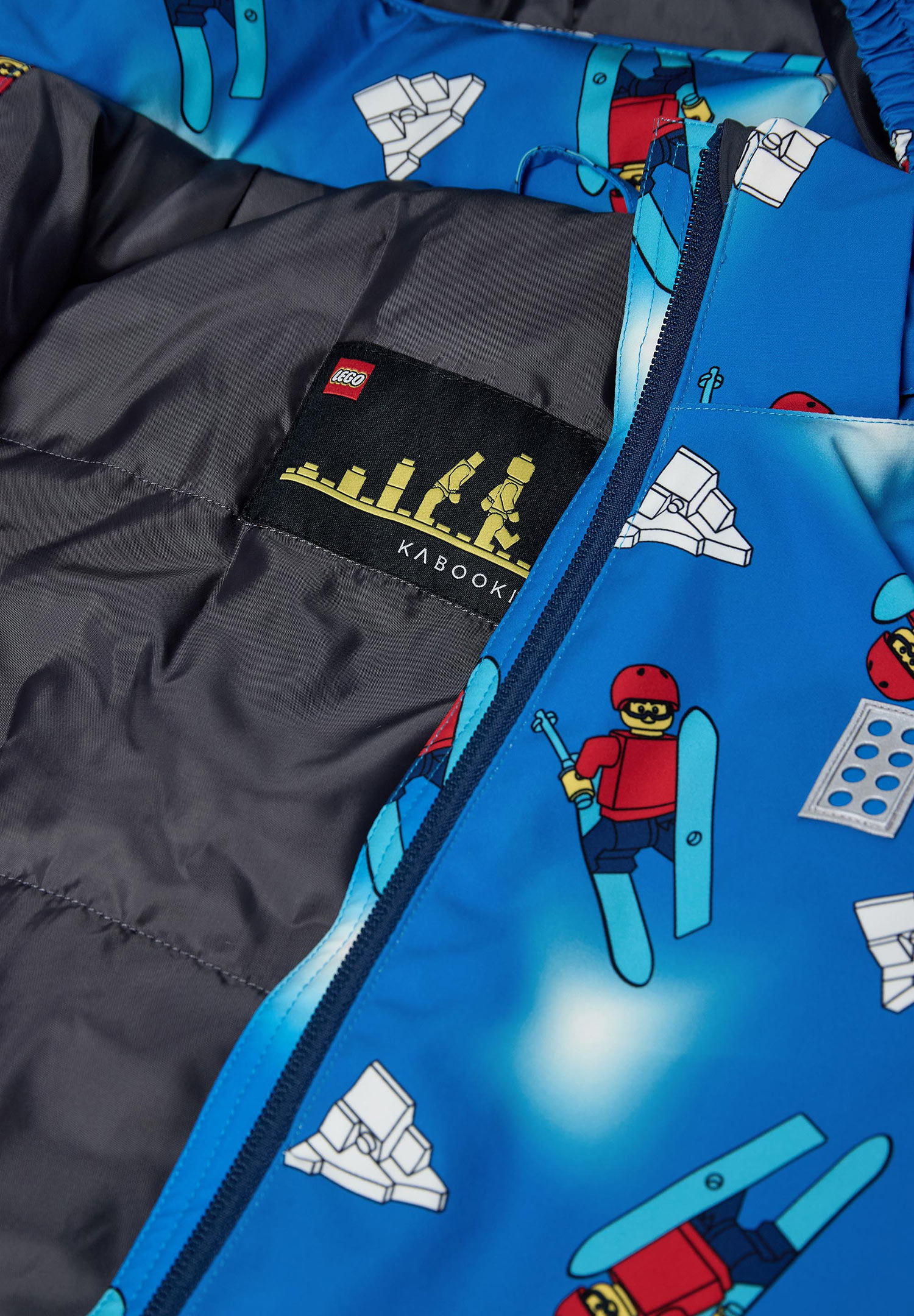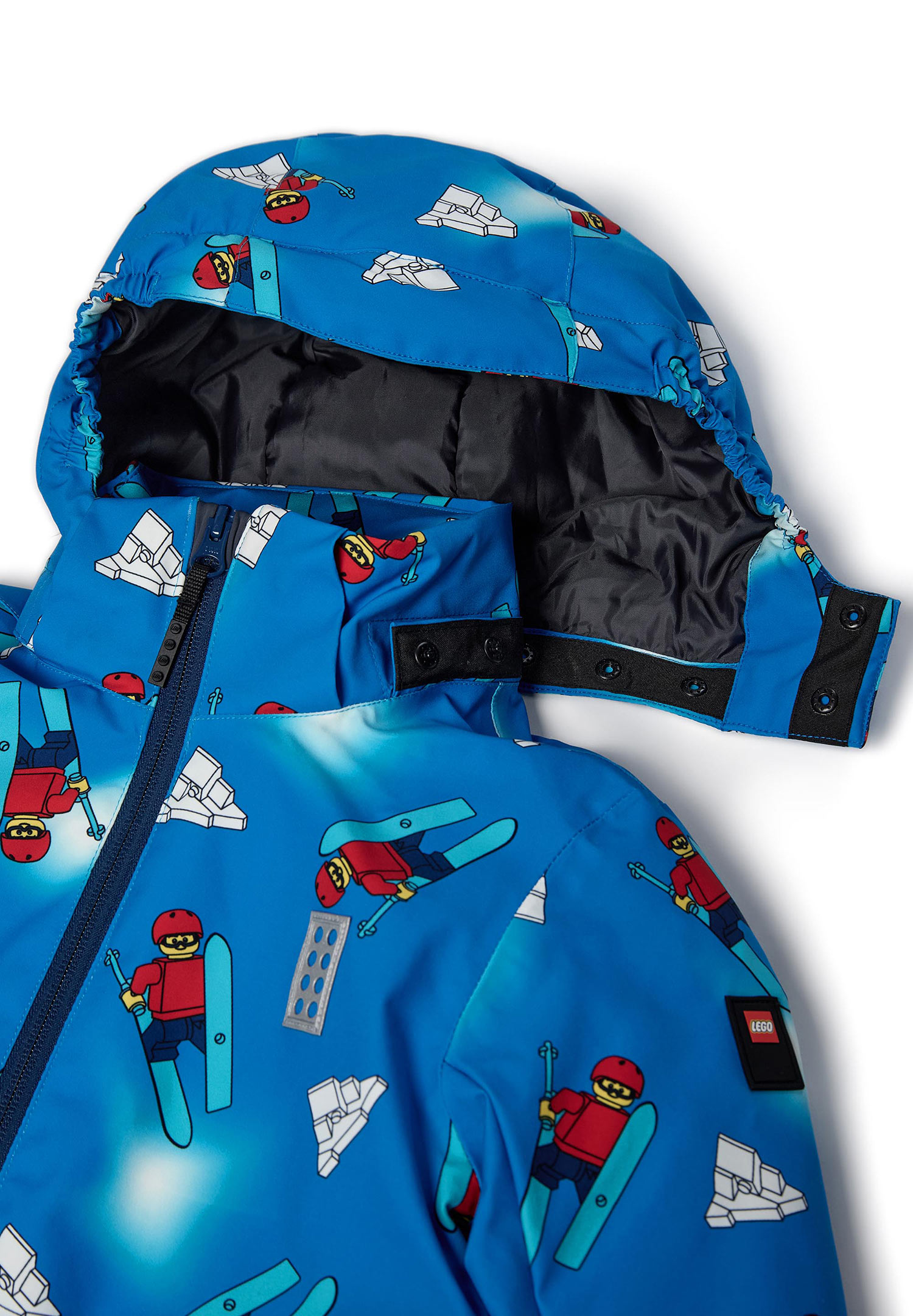 Plava funkcionalna LEGO ski jakna sa vodonepropustljivošću od 10.000 mm i 3M reflektujućim detaljima.