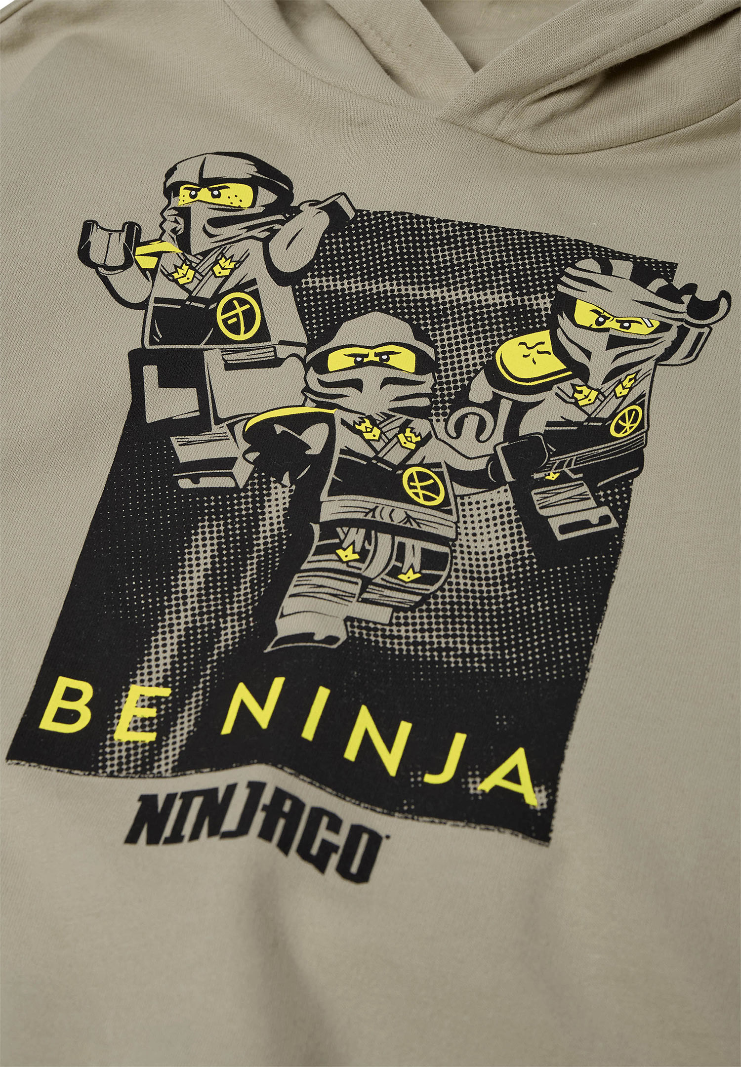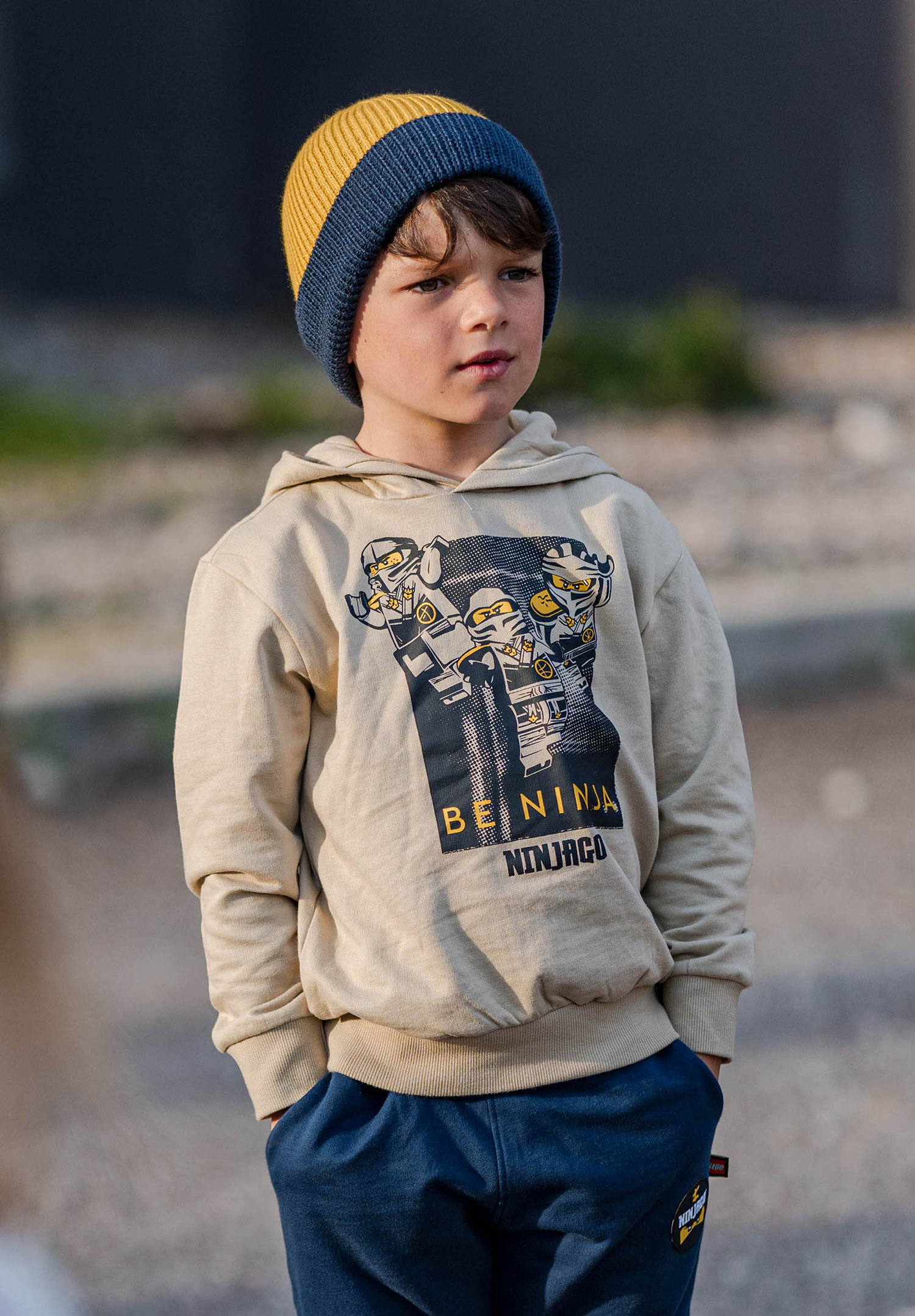 Bež duks sa kapuljačom LEGO NINJAGO za dečake, napravljen od 100% pamuka sa dinamičnim printom omiljenih nindža heroja.