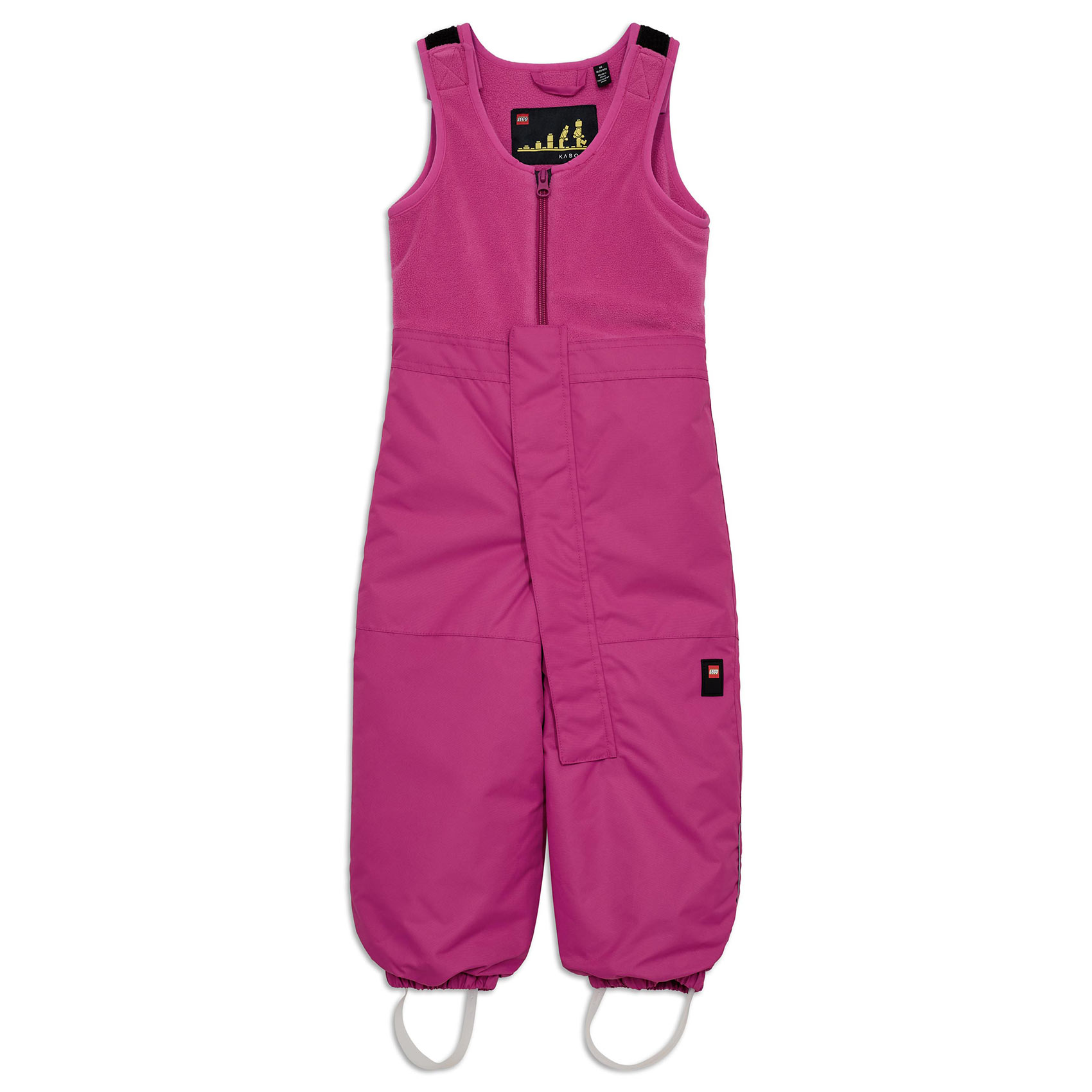 Jarko roze LEGO ski pantalone sa vodonepropustljivošću od 10.000 mm i mogućnošću produžavanja nogavica za celu veličinu.