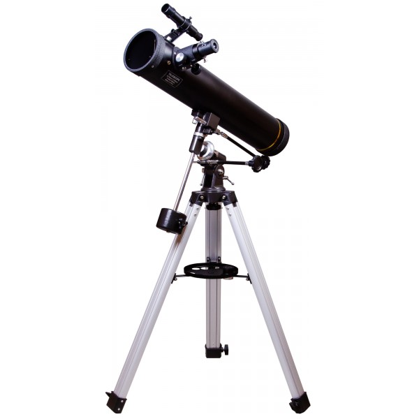 - Teleskop je postavljen na ekvatorijalni nosač, koji omogućava nesmetano praćenje astronomskih objekata preko neba. Međutim, potrebno je neko vreme da se savlada rad teleskopa. Nosač je pričvršćen na aluminijumski stativ. Možete ga postaviti gotovo bilo gde zbog mogućnosti podešavanja nogu stativa. Teleskop dolazi sa držačem za pribor.