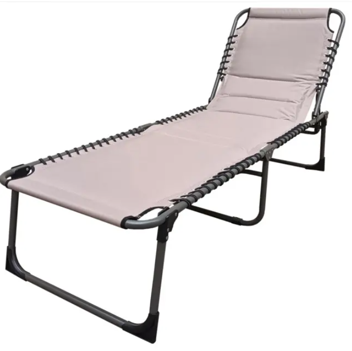 - Ležaljka u taupe boji.. Ova sklopiva ležaljka je prijatnog tekstila je veoma udobna i lako je prenosiva gde god da krenete na letovanje, kampovanje, za odmor u vašoj bašti, pored bazena..