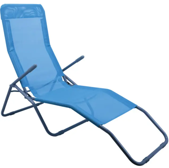 - Ležaljka za kampovanje u plavoj boji sa rukodržačima. Pritiskom leđima na naslon podiže se donji deo ležaljke i time se pozicija menja u ležeći položaj. Idealna za kampovanje, kako za ležanje pored bazena, tako i na plaži.Ležaljka za kampovanje u plavoj boji sa rukodržačima. Pritiskom leđima na naslon podiže se donji deo ležaljke i time se pozicija menja u ležeći položaj. Idealna za kampovanje, kako za ležanje pored bazena, tako i na plaži.