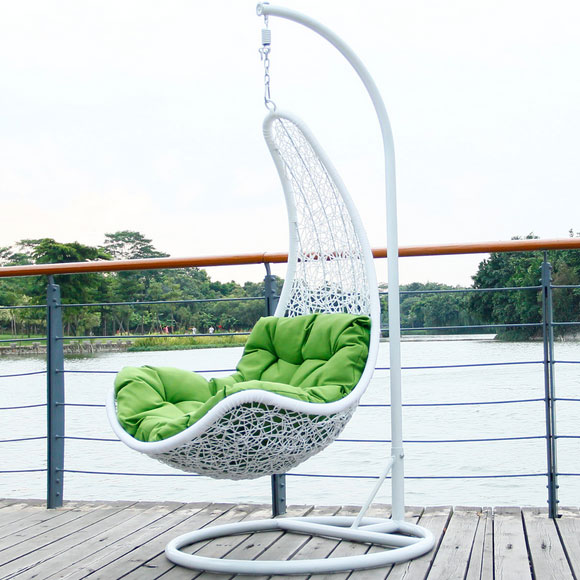 Predivna baštenska ljuljaška. Opustite se u izuzetno udobnoj korpi od ratana koju drži čvrsta čelična konstrukcija.