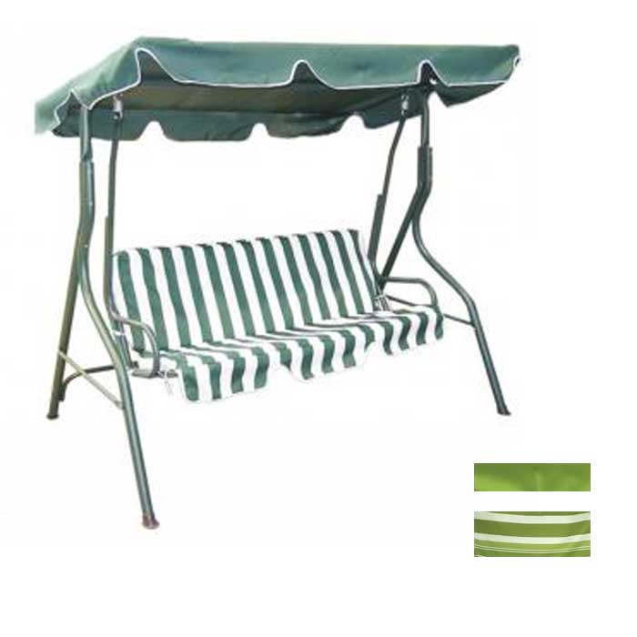 Ljuljaška za baštu sa zelenom nastrešnicom, zelenom metalnom konstruckijom i zeleno belim dezenom sedalnog dela.