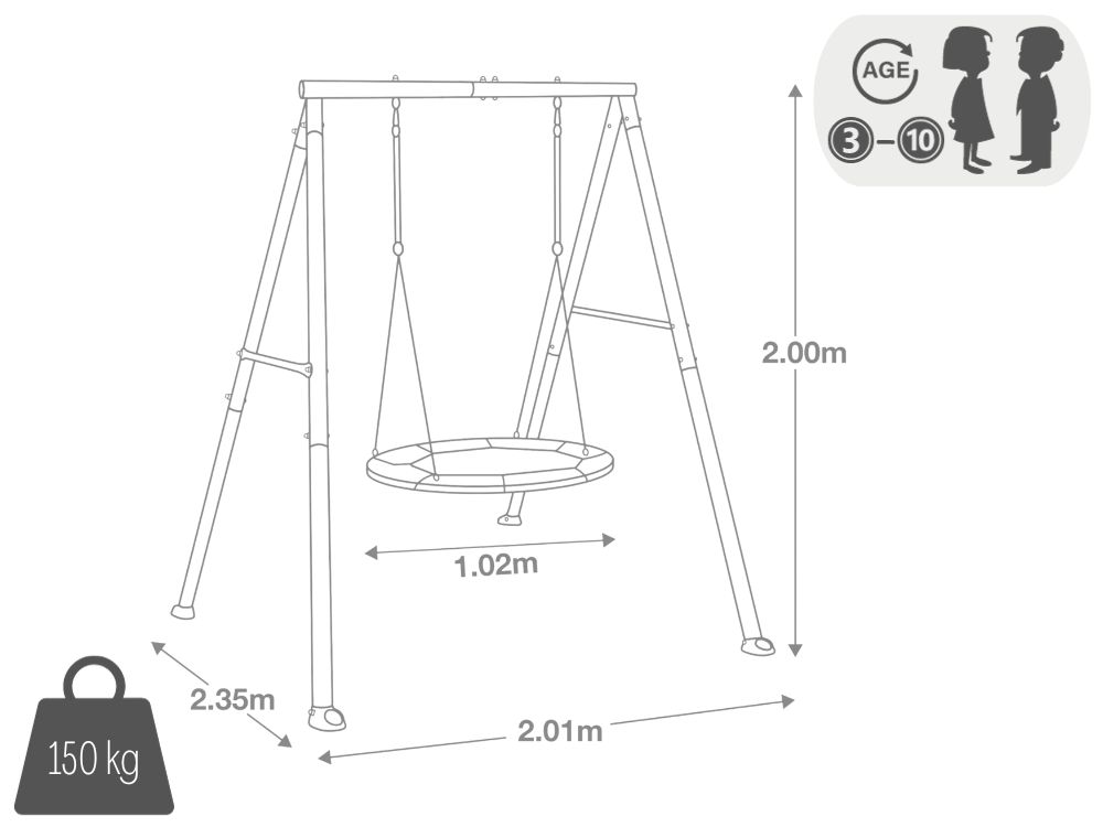 - Dimenzije:2.35×2.01×2.00m Podesiva dužina drški ljuljaške
