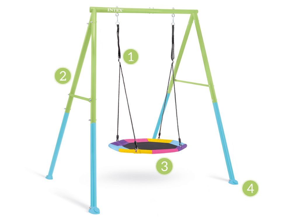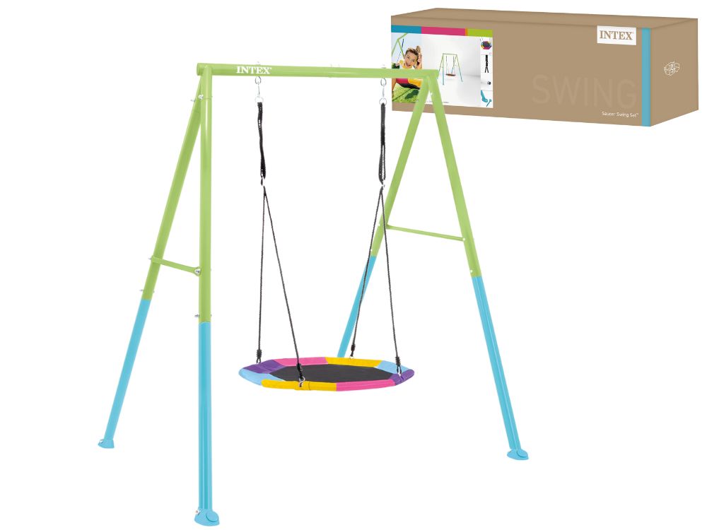 - Intex ljuljaška sa mrežastim sedištem u obliku tanjira i čvrstom čeličnom konstrukcijom pruža deci udoban i siguran prostor za ljuljanje, sedenje i izležavanje.
