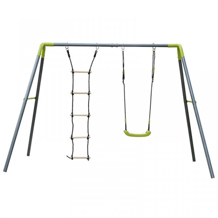 - Ovaj set za igru donosi klasičnu zabavu u vaše dvorište, sadržeći dve klasične ljuljaške i jedne merdevine, pružajući raznolike mogućnosti za igru.