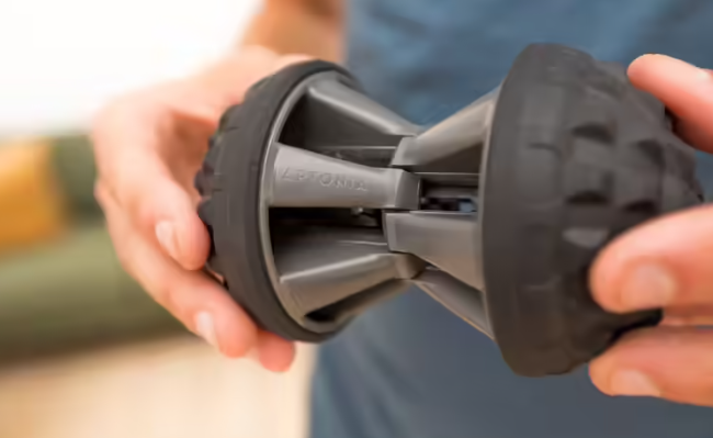 - Omogućava samomasažu. Koristi se na podu (stopala, noge) ili zidu (leđa)