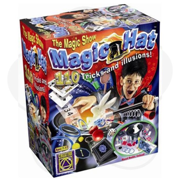 - Radi se o mađioničarskom setu koji sadrži: uputstvo na srpskom jeziku sa 110 trikova i fazona, magični štapić, kutija sa pregradama i kartama i ostalim dodacima, lažni prst (palac) koji nestaje, tri veće čašice, četiri manje časice plus kockice, kutijice i karton, tri prstena sa kanapom za varke, štapić koji menja boju, plasticni novčići sa umecima i držačima, kuglice i polu kuglica za varku, feder, prsten i alka, sunđerasti oblici, kockice i cilindar sa pregradom i sunđerasti zec koji nestaje.