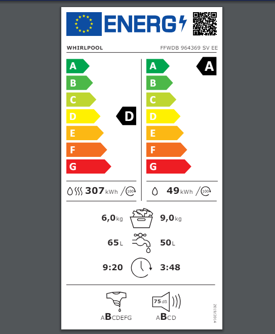 - Dodatne funkcije: odložen start, child lock, program 20°C, eco 40-60, pranje&sušenje 45, pranje&Sušenje 90, pamuk, pamuk 40, pamuk 60, osetljive tkanine, sintetika, sintetika 40, sintetika 60, eco pamuk, mešane tkanine, drain&spin, samo sušenje, 14 programa, rapid 30, vuna