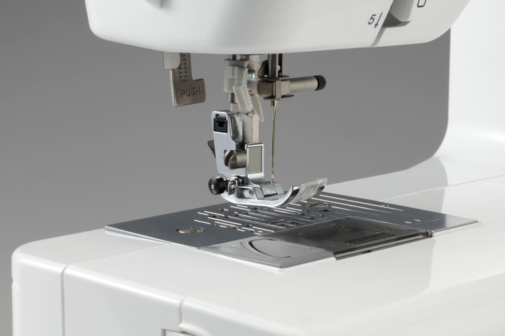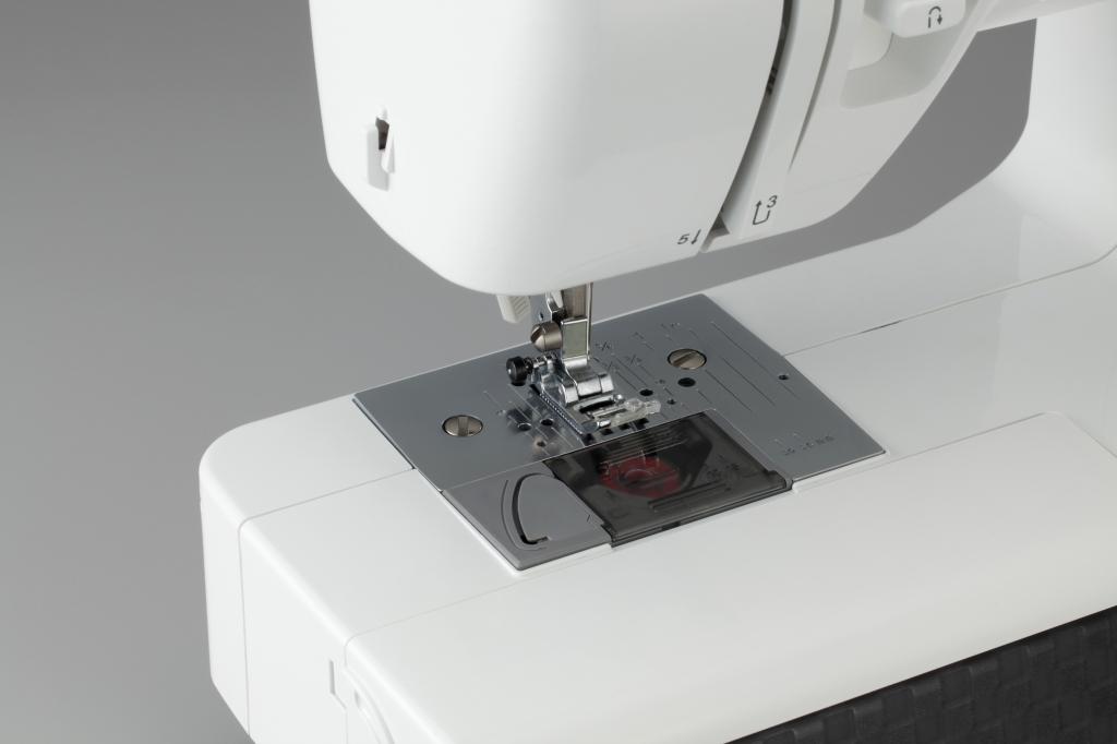 • -Stopica sa dugmetom za zaključavanje za lakše šivenje debelih ivica
