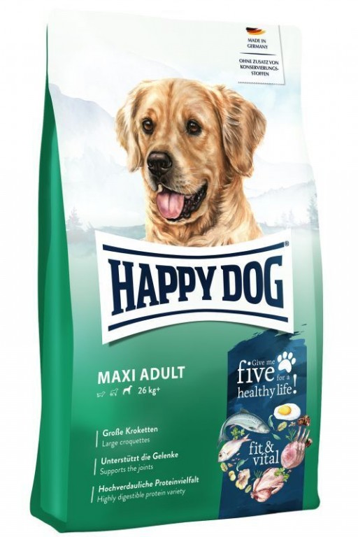 - Happy Dog Fit & Vital Maxi Adult je namenjena odraslim psima velikih rasa sa težinom preko 26 kg i normalnim energetskim potrebama.
