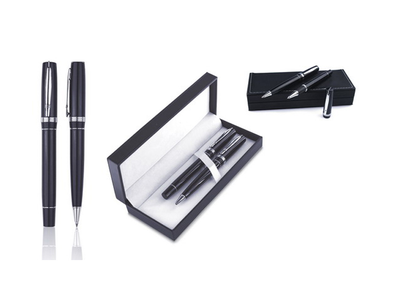 Metalna hemijska i roler olovka u kutiji od eko kože 312985