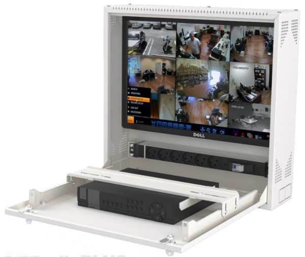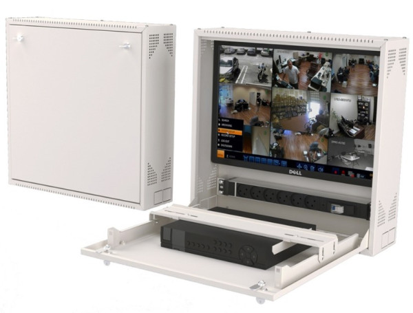 Kvalitetan metalni-rek orman za smeštaj DVR-a, monitora, napajanja i mrežne opreme. Korisna dubina za smeštaj uređaja iznosi 140mm. Ovaj model se može montirati na zid. Ovaj model je BELE boje i plastificiran je. Vrata se mogu otvoriti pod uglom od 90 stepeni a na vratima se nalazi klizni držač koji može da prihvati XVR bilo kog prizvođača visine 1U. Otvori za ventilaciju se nalaze sa svih strana a cirkulacija vazduha je prirodna. Sa gornje strane postoje otvori za dva ventilatora veličine 80*80mm koji se kupuju zasebno. Radi lakše manipulacije i transporta, Rek orman se prodaje sastavljen i u kutiji. Monitor, DVR i napojna letva se kupuju zasebno i ne dolaze u kompletu.