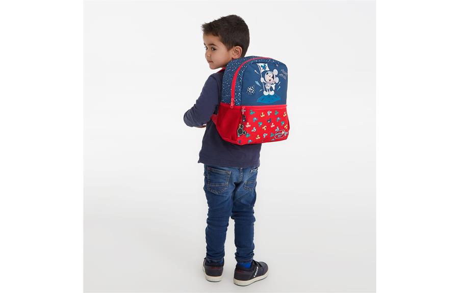 Astronaut Mickey je ovaj put otišao na Mesec da postavi svoju zastavu i pozdravi nas odatle. Tako je srećan što je njegova magija učinila da zvezde padalice polete! Ne oklevajte da na putovanja ili kratke izlete tokom vikenda ponesete jedan od kofera koji je savršen za putovanja najmlađih u kući. Tu su i rančevi, putna torba i pernica – sve u kolekciji Mickey on the moon. Videćete kako ćete i vi jednog dana moći da se popnete na Mesec!Biće dovoljno mesta za sve što je potrebno da smestite u rancu. Tu su dva bočna džepa za odlaganje flašica sa vodom, prednji džep za sitan pribor plus veliki glavni odeljak. Široke i podesive trake koje se savršeno prilagođavaju leđima, omogućavaju lagano nošenje ranca.