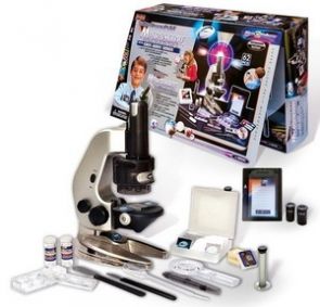 - Set sadrži mikroskop sa uveličavanjem 100, 600 i 1200x,