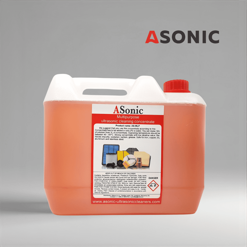 ASONIC AS-MLP je profesionalni, višenamenski alkalni koncentrat za čiščenje dizajniran za ultrazvučne mašine za čiščenje. Obezbeđuje močno, ali bezbedno dejstvo na širokom spektru materijala, od metala do plastike i stakla. Formulisan za efikasnu ultrazvučnu kavitaciju, AS-MLP brzo uklanja ulje, mast, ugljeničke naslage, oksidaciju i blagi rđu, što ga čini idealnim za radionice, mehaničko održavanje i opšte industrijsko čiščenje.Ključne prednosti