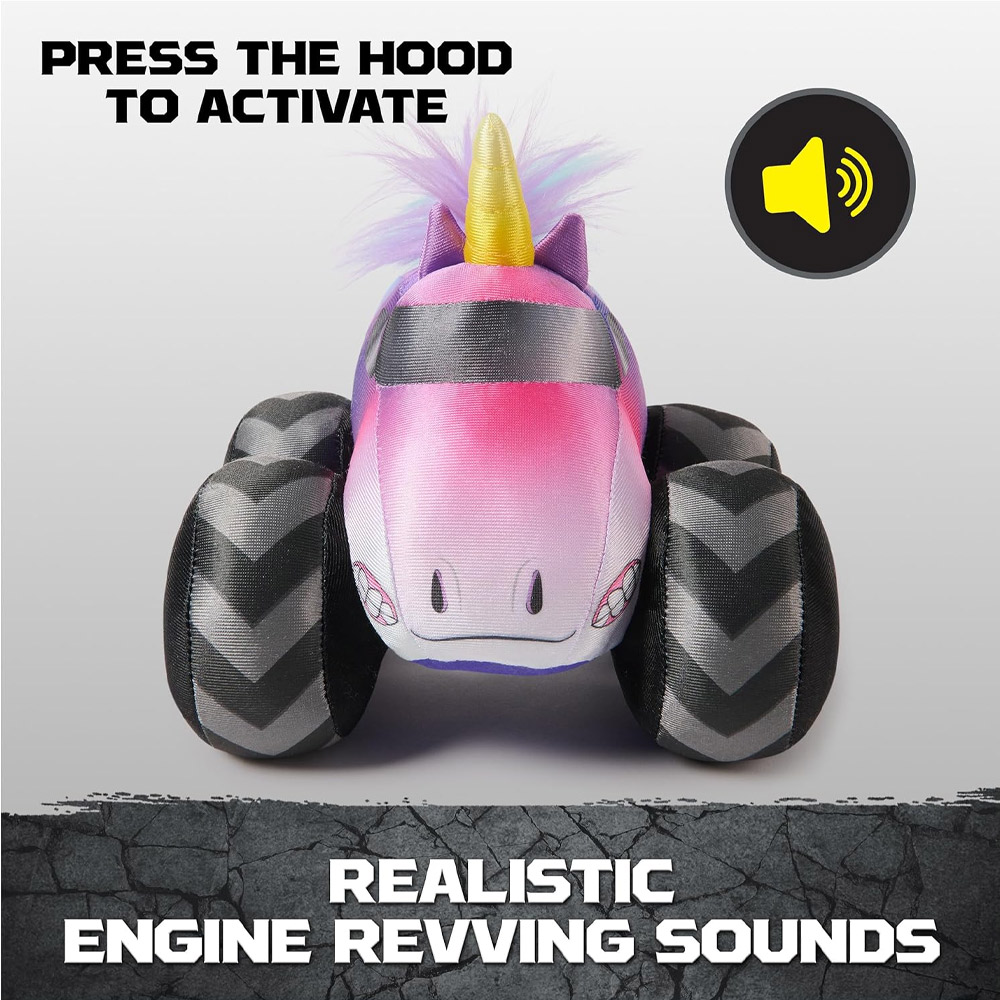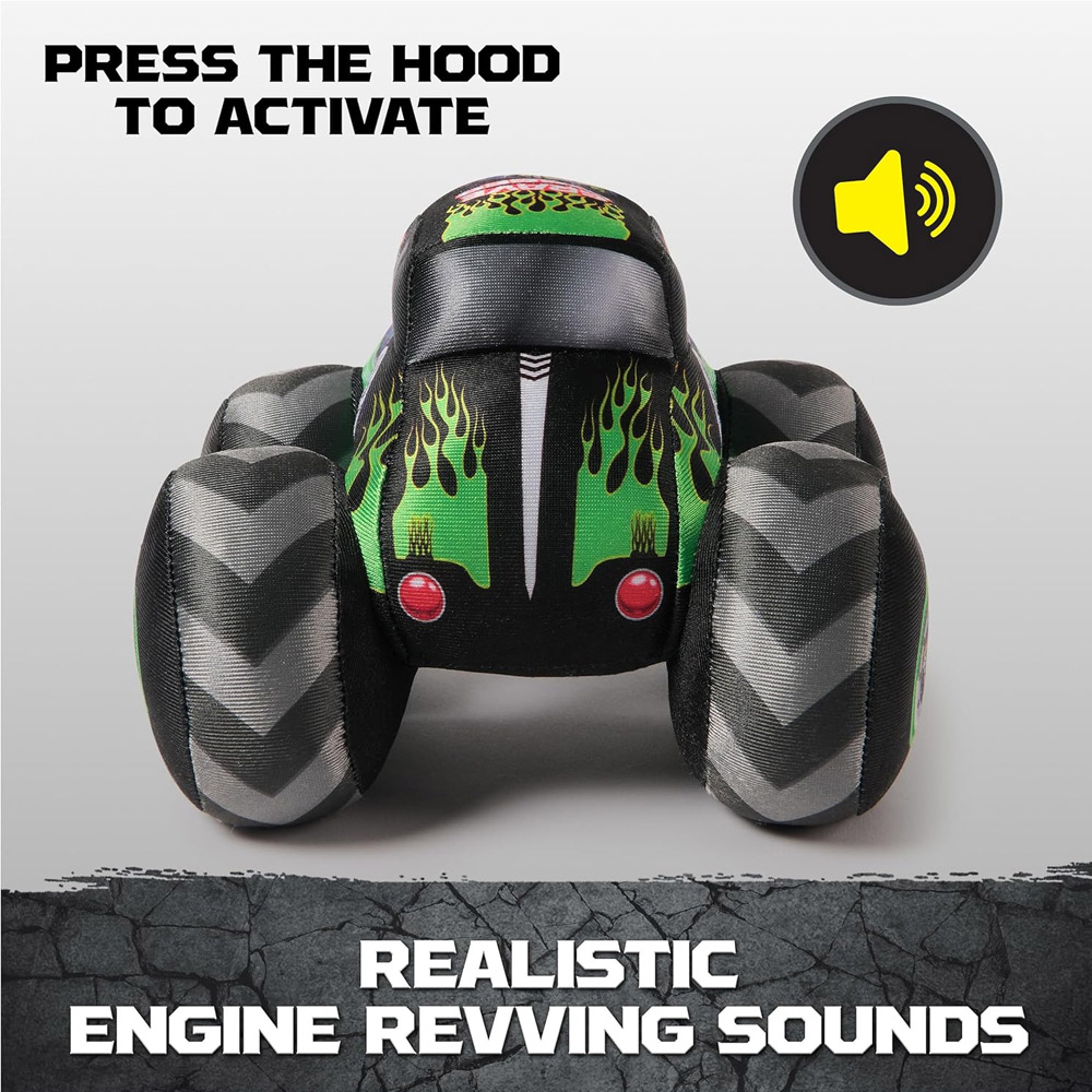 Zakorači u svet Monster Jam i izvodi akrobacije gde god želiš sa ovim plišanim kamionom! Inspirisan pravim Monster Jam kamionima, dolazi sa svim detaljima koje obožavaju fanovi, ogromnim mekanim crnim točkovima i zabavnim zvukovima koje aktiviraš pritiskom na kamion!