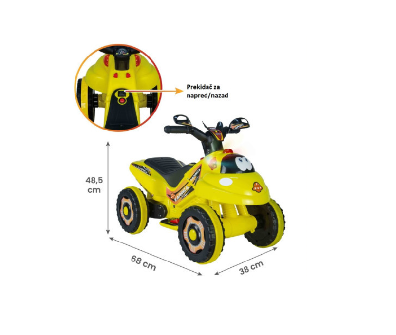- Motor-Guraljka 2u1 6V1000MA Motor sa prekidačem na pogonskom motoru koji oslobadja točkove i može se koristiti kao guraljka