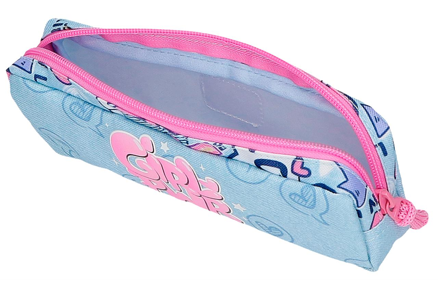 MOVOM GIRL POWER prazna pernica donosi pastelno-plavu osnovu i razigrane ilustracije koje daju vedar, moderan izgled. Praktična je, lagana i idealna za devojčice koje vole uredan pribor i brzu organizaciju tokom školskog dana. Izrađena je od izdržljivog poliestera koji se lako održava i spremno podnosi svakodnevnu upotrebu.