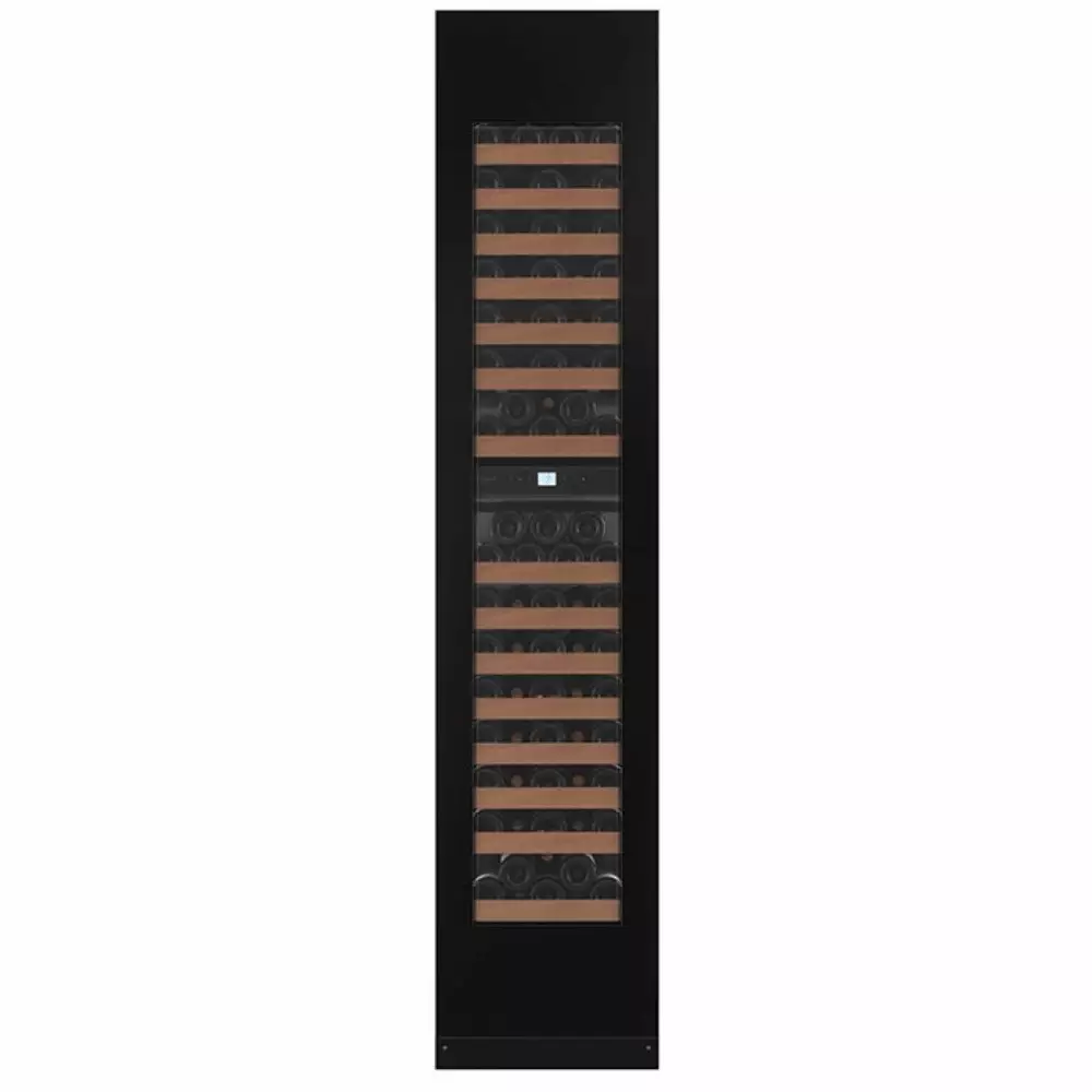 Sa visinom od približno 2210 mm, dizajniran je za ugradnju u kuhinjske elemente visine 221 cm i širine 45 cm i može da smesti do 87 boca vina (0,75 l Bordo). Elegantna staklena vrata sa UV zaštitom i antracitno-crnim okvirom efikasno štite vino od svetlosti, dok mehanizam otvaranja pritiskom naglašava čist, moderan izgled, a izvlačne drvene police obezbeđuju jasno, bezbedno i jednostavno skladištenje. LED osvetljenje stvara izvanredno vizuelno iskustvo i naglašava izložbeni karakter vaše kolekcije vina.