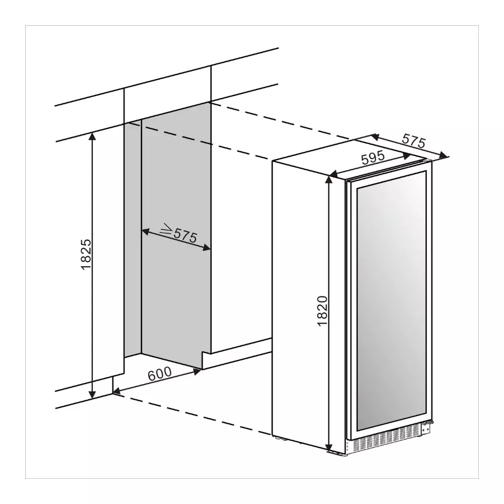 Sa visinom od približno 1820 mm, dubinom od 575 mm i širinom od 595 mm, ormar nudi veliki kapacitet i može da smesti do 200 boca (0,75 l Bordo). Zahvaljujući dobro osmišljenim dimenzijama, lepo se uklapa u različite prostore za život, a istovremeno omogućava lako postavljanje pored kuhinjskih elemenata ili kao samostalni estetski akcenat u prostoriji.