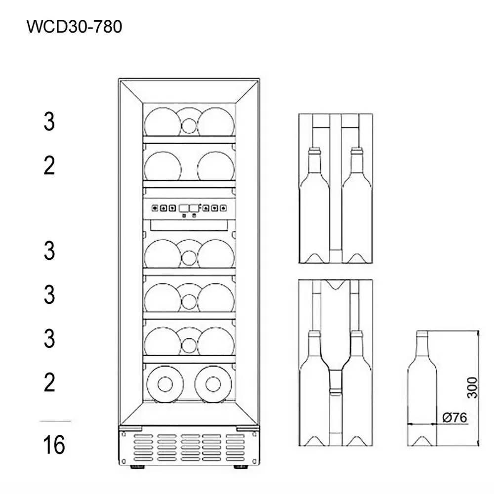 - Kompaktni kapacitet do 16 boca (0,75 l Bordo).
