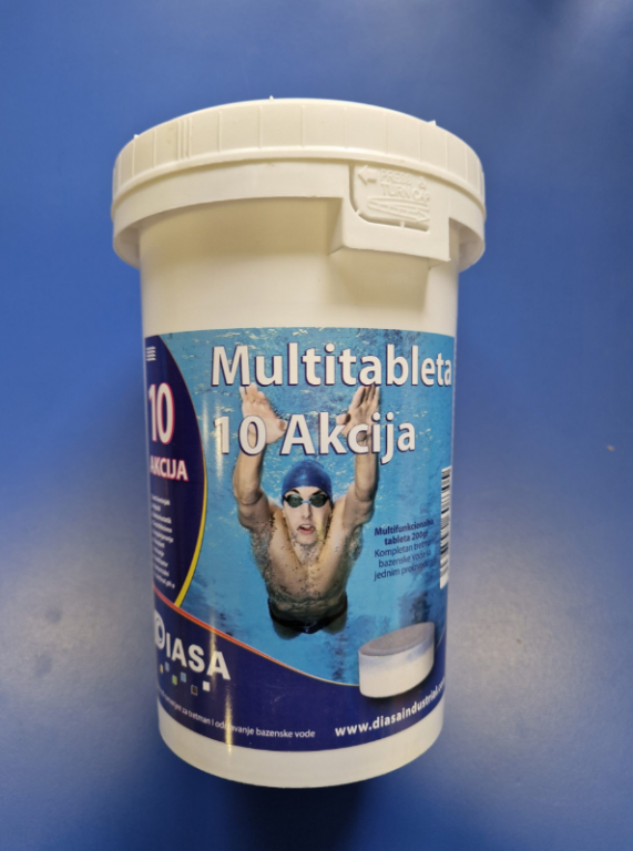 - Sve u jednoj tableti 100 gramska tableta deluje kao antikrečnjak, algicid, bakteriostatik, dezinfekciono sredstvo. Služi za razbistravanje vode, sadrzi u sevi flokulant, poliranje vode, stabilizator, baktericid, stabilizuje ph.