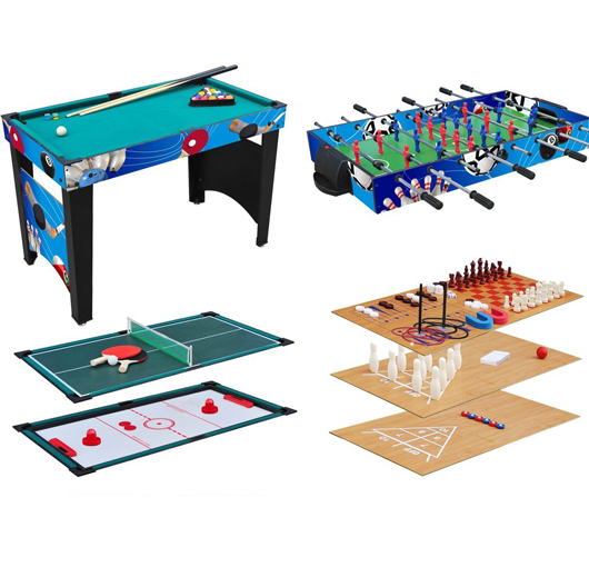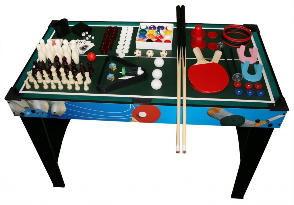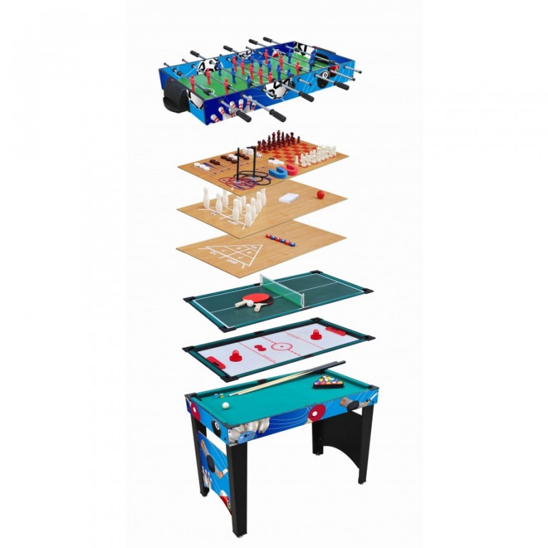 Višenamenski sto za igru koji obuhvata gotove sve popularne igre za zabavu sa prijateljima ili porodicom. Komplet sadrži table i svu opremu potrebnu za igru fudbala, bilijara, hokeja, stonog tenisa, kuglanja, šaha, checker-a, backgammon-a, shuffleboard-a, potkovica, bacanje prstena i kartaških igara. Kompaktne dimenzije stola i jednostavan princip izmene tabli štede prostor a pružaju mogućnost beskonačne igre i zabave.
